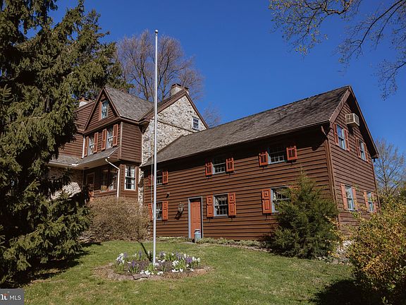 There is a lot of room for living and entertaining in this handsome 1758 Chester County farmhouse on just short of an acre in Westtown Township. The original stone farmhouse was built by early settler, John Townsend, and is noted by the Township as a home of historic value. It was expanded in 1989 with a sizable Amish-built addition of wood-peg mortise and tenon construction, creating a dramatic large family room/living area and sizable loft area with exposed wood beams and wood paneling. The finished living area in this home is 4,289 square feet and has an interesting amalgam of formal spaces and more casual congregating spaces with stone or wood surround. Enter from a flagstone patio to the updated country kitchen with open beam ceiling, brick fireplace, three wall ovens, and granite countertops. The laundry area and powder room are just off to the side and a screened porch opens from the back of the kitchen out to bucolic views of the backyard. The formal dining and living room, both with fireplaces, span the other side of the main level. Downstairs there is a fun labyrinth of fieldstone spaces – a media room, family room with wet bar and built-in cabinetry, and sitting room – all with fireplaces. The stone social spaces lead into the addition – a wow of a “party room” or the perfect office space, an homage to wood and quality craftsmanship, with its own entrance, french doors out to the yard, and walk-up loft with a vaulted beamed ceiling. The second floor hosts a full bath and three well-lit bedrooms, one with a fireplace, and the other connecting (once a nursery perhaps?) to a sunny large primary bedroom with sitting area. From the primary bedroom, a curved wooden staircase leads up to a third level with a full bath, built-in storage, and three more potential bedrooms, or maybe just the coolest kid sleepover space ever! If you love the quality construction and interesting architectural elements of old homes, this is your house. It has wood floors, fireplaces, brick, stone and wood elements, crown molding, exposed beam ceilings, bullnose windows and deep sills, and surprisingly good closet space. The lot feels private and lush with mature plantings and a beautiful lawn. There is a 3 car detached garage and plenty of additional parking. This one of a kind living space is ideally located, offering peaceful suburban living with close proximity to the fine dining, arts and industry of the County Seat.