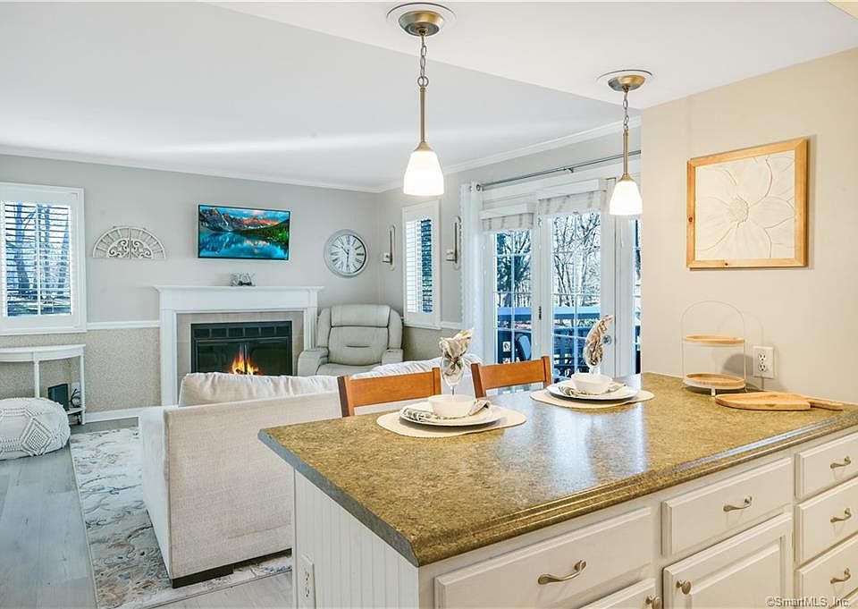 Experience tranquility in this updated 1-bedroom villa, nestled in a peaceful condo community close to the clubhouse and pool. Step into a haven of relaxation as the bedroom and ensuite bathroom are separated from the living space by French doors. Unwind by the wood-burning fireplace in the living room, creating a warm and inviting ambiance. The bathroom features a full bathtub and shower, providing a spa-like retreat. Recent upgrades include gray vinyl plank flooring and plush carpeting in the bedroom, adding a touch of luxury to your living space. Delight in serene views of the pond with a fountain from your private deck, creating a perfect spot for quiet contemplation. The kitchen boasts newer appliances, including a dishwasher, ensuring convenience in your daily routine. The villa comes furnished with a queen-sized bed, side tables, and a dresser, offering a cozy and welcoming atmosphere. Smart TVs and programmable thermostat. Explore the expansive 12.51-acre property, adorned with a mile of walking trails. The clubhouse offers seasonal saltwater pools, a Jacuzzi, saunas, a fitness room, coin-op laundry, and showers, providing a resort-like experience at your doorstep. The Villas at the Norwich Inn & Spa offer a unique living experience, conveniently located near casinos, restaurants, and shopping. Landscaping and snow removal are included with the HOA. Whether you seek easy year-round living or an Airbnb opportunity, this villa is a perfect choice. Cash/conventional. One of the property's owners is a Real Estate Licensee.