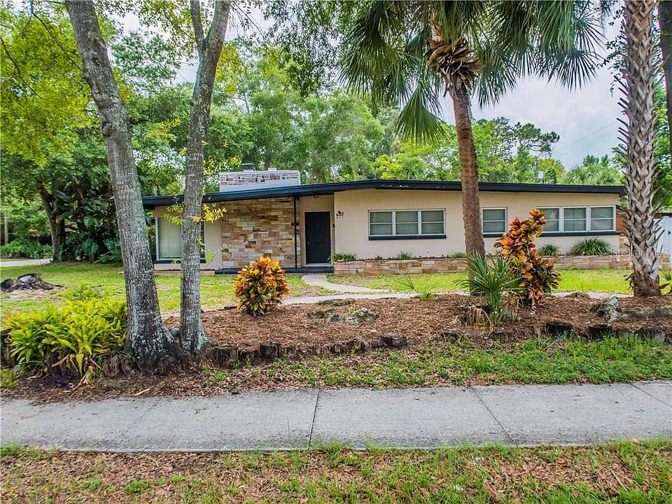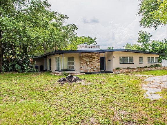 A Mid-Century Modern dream home! Beautifully designed 4 bedroom, 3 bath, 2 car carport corner lot house with an oversized inground pool, large covered lanais , and plenty of room to run and play. This house was built for entertaining with it's large dining area just off the updated kitchen, that flows through large sliding glass doors to the covered patio and pool area. Sunk in formal living room features a stone fireplace and a picturesque corner window. Large master suite with jacuzzi tub could be used as a separate mother-in-law suite. Plenty of closet space and storage throughout and amazing terrazzo floors through most of the home. Huge inside utility room offers ample work or hobby space in addition to laundry. Located in one of Maitland's highly desired neighborhoods, close to I-4, Maitland Business Center, Altamonte Mall, and Winter Park Village.