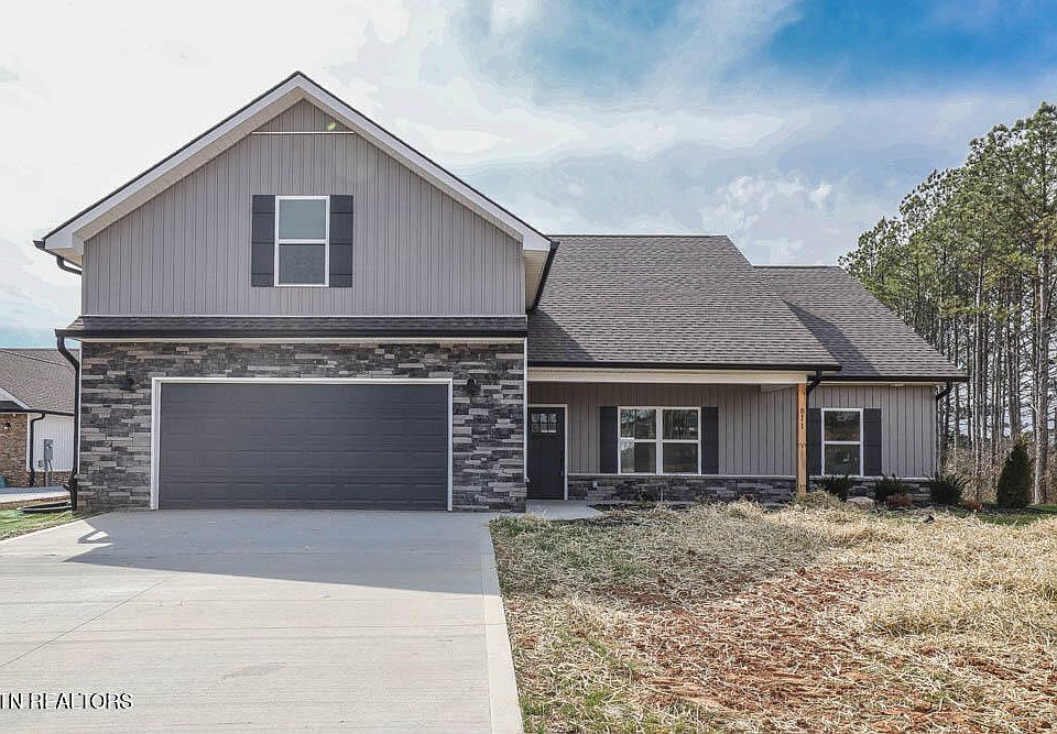 NEW CONSTRUCTION IN BEAUTIFUL PINEBROOKE POINT SUBDIVISION WITH MOUNTAIN VIEW! This brand new home is underway with finishing touches and will soon be ready for its new owner! This is a wonderful Rosewood floor plan with a large bonus room above the two car garage - it features stone and board and batten exterior low maintenance siding, covered front and back porches, large level back yard with mountain views, and is positioned on 3/4 ACRE lot! You'll love the open concept living with split bedroom floor plan, tray ceilings in living room and primary suite, matte black hardware and fixtures, ample kitchen island with upgraded counter tops, stainless appliance package, walk-in tiled shower, subway tile backsplash in kitchen, and so much more. Upgraded LVP flooring throughout main level with carpet in upstairs bonus room. One year builder warranty provided at closing! Call today to schedule your showing! Owner/Agent.