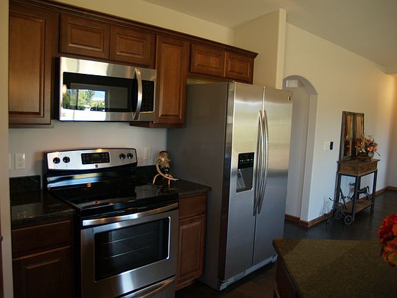 Nice patio home with beautiful finishes. 2 bedroom 2 bath home with vaulted ceiling, open living, kitchen and dining area with granite counters and pantry. Fenced yard with sprinklers and an oversized garage. The snow shoveling and yard care are included in the HOA fee. All measurements are approximate.