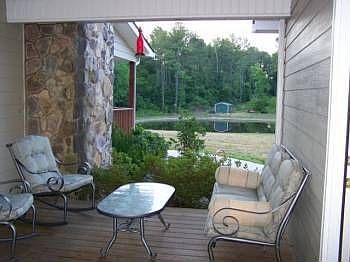 Enjoy all that nature has to offer from your rocking chair porch of this 4 BR/3BA ranch on 7.88 acres. Sit on one of the multiple decks and enjoy the tranquil waters on YOUR OWN property. Custom built in-ground pool with plenty of surrounding patio and diving board. Great room with vaulted ceilings, stacked stone fireplace and gleaming hardwood floors. Kitchen with bayed window breakfast area. Lots of outdoor places for peace and quiet outdoors including a breezeway, back deck and outdoor fire pit. Complete in-law suite with second kitchen.
