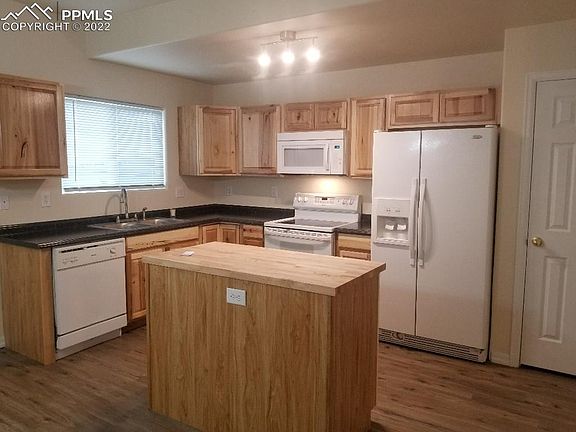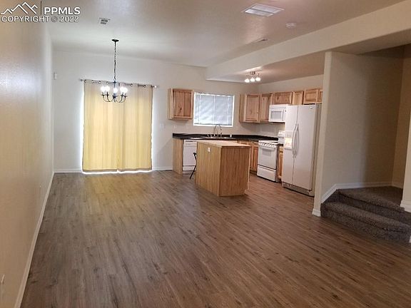 Beautifully updated contemporary 2-bed, 2.5 bath townhome. Brand new LVT on first floor with new hickory cabinets, countertops, sink and faucet. Appliances are all in fantastic shape. Pantry in kitchen offers great storage. Nice open floor plan with half bath on main floor and attached 1 car garage. New lighting and ceiling fans throughout. Brand new carpet upstairs with 2 nice sized bedrooms and bathrooms, washer/dryer hookups. New doors, casing, and baseboards. New vanities, sinks & shades. Master has walk in closet and attached bathroom suite. 2nd bedroom has a built-in closet system. Centrally located off of Powers Blvd & Airport Rd with super easy access on & off. Fenced patio area in backyard. HOA Services included: Common Utilities, Covenant Enforcement, Exterior Maintenance, Insurance, Lawn, Management, Snow Removal, Trash Removal. Close to ENSCO, Amazon Distribution Center, Colo Springs Airport, Peterson Air Force and Fort Carson. Completely move-in ready!