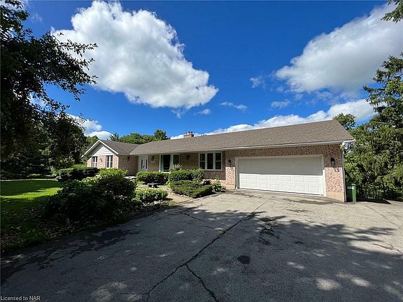 Here is the Sprawling ranch bungalow you have been waiting with ample square footage situated on a pristine 1 acre ravine lot located on Ridge Road. Exterior features include a large covered upper porch at the rear of the home over looking beautiful green grass similar to a park setting with no rear neighbours. Other note worthy features include a lower level walk out that offers an additional covered patio area overlooking the picturesque one acre property. You will enjoy the ample gardens, rich with perennials and mature trees...nature at its finest. On the interior, the main level boasts 2554 sqft of living space and an additional living space on the lower level which is ideally set up for a large family or in-law living situation. There is no shortage of storage in this home for the hobby enthusiast from the large paved driveway from parking at the side of the home which leads straight into the rear of the home which is ideal for families with multiple vehicles and recreational toys/trailers or work vehicles. The front of the home greets you with a spacious two car garage with an additional one car garage located around the back on the lower level of the home, this way you don't have to clutter up the double garage with utility household items. The home offers a gas generator, large room sizes throughout, four bedrooms & 2.5 baths on the main floors with additional living quarters on the lower level, with a separate entrance if required.The lower level is an ideal set up for an in-law suite complete with its own laundry, bathroom, kitchen rough-in, new insulation, flooring and freshly painted. There is also access to the second garage for further storage. This location feels like the country, yet you are only a short distance to the quaint downtown Ridgeway & Crystal Beach shopping, restaurants, groceries, trails, sandy beach, marinas. Close to golf & easy QEW access, Buffalo & more. Move to Ridgeway and be among some of the finest real estate in all of Niagara.