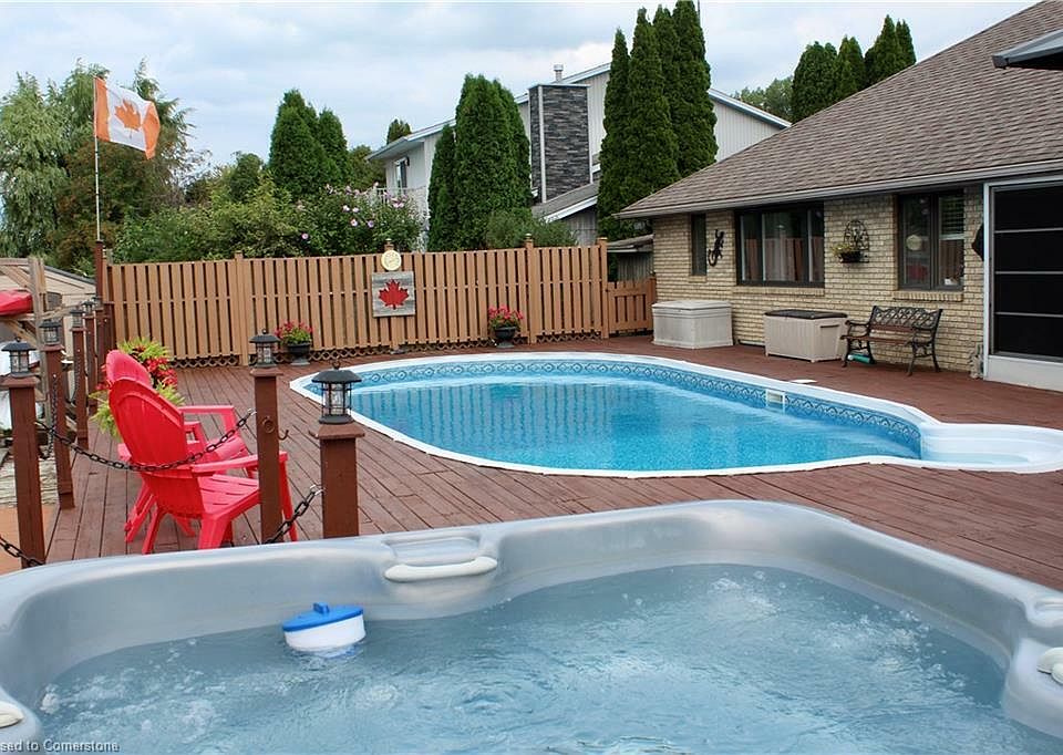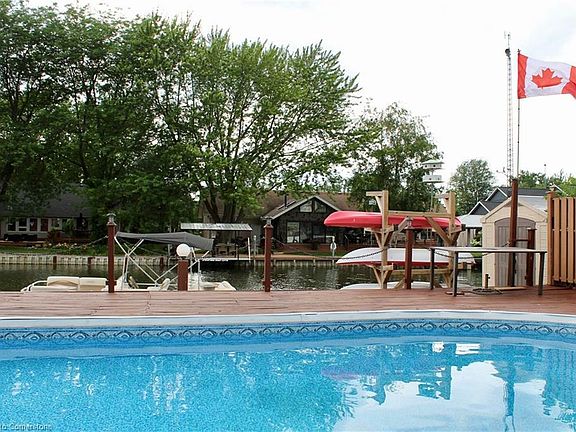 Welcome to your dream home in the heart of the desirable Lighthouse Cove community! This beautiful brick bungalow offers a perfect blend of comfort, luxury, and convenience, featuring 3 bedrooms, including a primary bedroom with a 3-piece ensuite bath, walk-in closet, and vanity area, an additional 4-piece bath and a 2-piece powder room. The spacious Great Room complements the updated kitchen with a center island, granite composite double sinks, stainless steel appliances, and extensive built-in cabinetry, leading to a sunroom and backyard oasis with a 16' x 32' heated pool with a new pump and liner (2023), a hot tub with a new pump and control system (2023), and an 80' dock on the canal. Additional features include a metal gazebo (2022), two dock sheds, a pool shed, garden storage sheds, and a kayak stand, along with a double garage and driveway with interlocking brick, a covered front porch, and extensive crawl space for storage. Enjoy 5-minute waterway access to Lake St. Clair and the Thames River, with nearby amenities such as Lighthouse Variety Bait & Tackle with LCBO and Beer Store Outlet, Cove Marina & Restaurant, and Lighthouse Conservation Area & Community Park with a tennis court and playground. Embrace the vibrant lifestyle of Lighthouse Cove, offering fishing, wildlife watching, water sports, and boating in this thriving community. Don't miss your chance to own this exceptional property; schedule your viewing today!