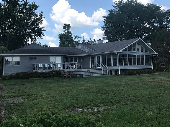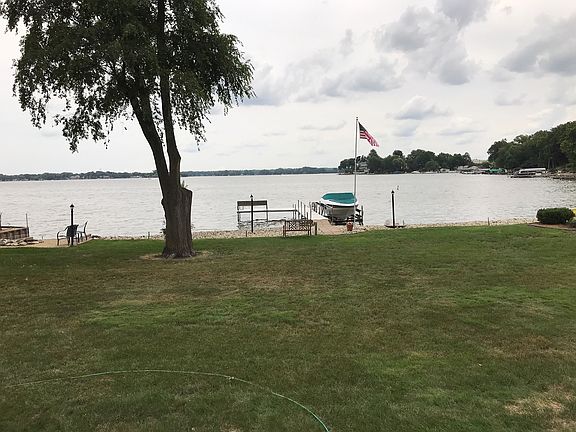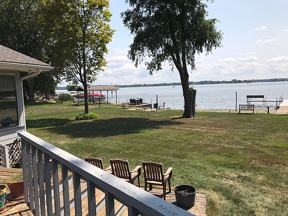 Tranquil, expansive setting with breathtaking views of Pistakee Lake. 120 glorious feet of waterfront in a beautiful bay area. Gently sloping stone beach (no sea wall to maintain) with an L shaped pier, included. Fire pit for summer fun around the campfire! A singular location among waterfront homes. The home was rebuilt (sellers believe about 20 years ago) on a higher, flow through, foundation. The huge, enclosed porch with vaulted ceilings, retractable windows (let as much fresh air in as you like!) was thoughtfully added in 2013 to maximize every opportunity to enjoy the shimmering water view. Cozy two sided fireplace between the Living Room and Dining Room adds to the rustic, beach-y charm. Extremely open floor plan features a stunning Kitchen rehabbed in 2017 complete with white finishes, miles of granite, professional quality stove top and buffet area. You can seat a crowd at the expanded island and there is ample table space as well. Both furnaces and roof only 8 years old.