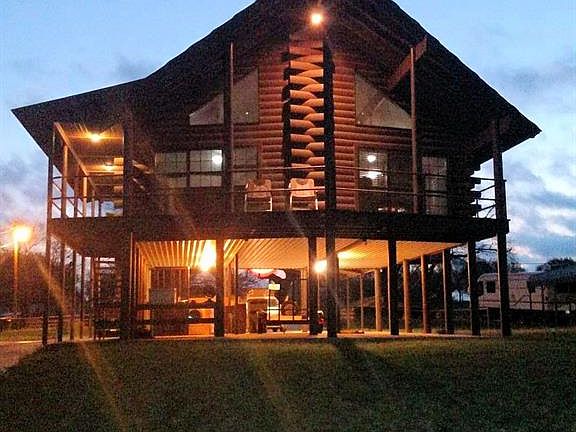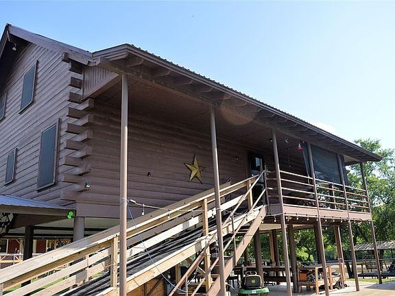 Beautiful River Front log Home on the Brazos River, Gated Community, Home sits high over 9 feet supported by steel pipe, Nice ramp up to house level, ramp can be removed if stairs are preferred stairs are still underneath ramp Fantastic views of River , Hills and Trees, Nice covered wood deck facing River, Work Shop or could be great office with electric and full bath room with shower. stack-able washer and dryer stays with the house. Bamboo wood floor in living room. There is a 50 AMP electric hook up for RV parking There are some RV's and Trailers but these are mostly for Weekend and Holiday Getaways very few are lived in.