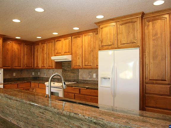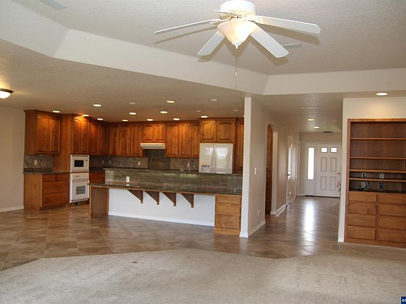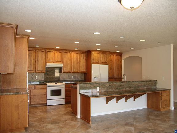 Welcome to this exceptional home, a serene retreat on a double lot with the added privacy of backing up to expansive open field space.This meticulously designed residence offers an inviting blend of comfort and style, featuring wide hallways, doorways, & bathroom. Accessibility is a highlight with no steps in the home, ensuring ease of movement throughout. Step into the heart of the home an impressive grand kitchen that boasts a striking 13-foot eat-in bar, perfect for casual dining or entertaining guests.