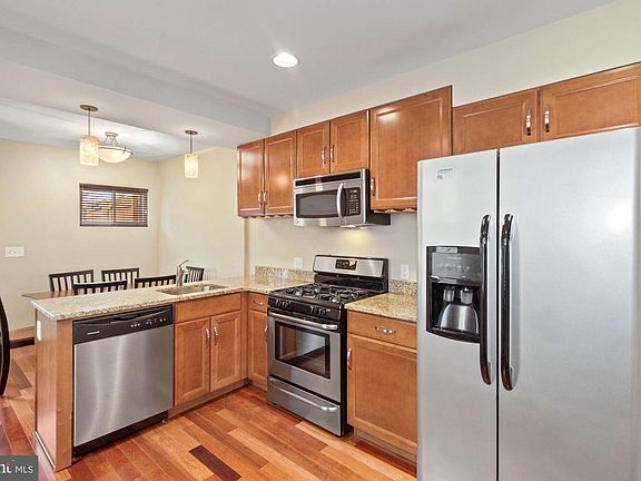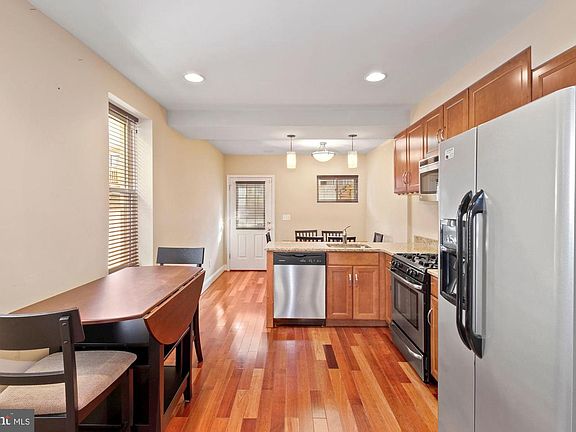 This newish rehab is definitely one to see. Unique exposed beam and wood ceilings in the living room lead to the kitchen and dining areas with gleaming hardwood floors front to back. Granite countertops, stainless appliances and a much sought after rear parking pad complete the main level. The second level offers sophisticated bathrooms and thoughtful decor with sliding barn door, slate tile work, a separate shower and soaking tub all in the primary bath. A well-appointed second bath and additional bedroom offer you and your guests rooms at each end of the home. The 3rd level houses a quaint but useful room with a wet bar and small refrigerator and lead to a front deck overlooking the city. If location is important, then this beautiful home hits on all cylinders. Very quick walk to some of Canton's finest dining establishments and the Safeway shopping complex.