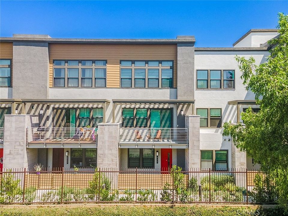 Modern luxury resort lifestyle in turn key residence with over the top upgrades. Spectacular townhome in a central Orange location. Completed in 2022 modern architecture " SMART HOME". Custom upgrades such as wood grain plank flooring, custom baseboards, matte black hardware and fixtures, lovely window treatments, ceiling fans plus recessed lighting. Three bedrooms, three full bathrooms and a powder room, almost 1900 sq. ft of living space. The celebrations happen on the second level where the Open Floorplan includes a Gourmet Kitchen with large quartz island and counters, white cabinets, a farm sink, stainless steel and black LG appliances. Walk in pantry in addition to a coffee bar area. The living room has a view out the sliding glass doors to the balcony and the park/ trees/ greenbelt beyond. Desirable first floor bedroom with en suite bath. The primary bedroom has the WOW factor boasting one entire wall of windows. Complete with spa inspired bath, dual sink vanity which features quartz counters, and the large shower. Stunning walk in closet equipped with custom closet organizers, drawers, and glass cabinets. The Guest bedroom also includes an en suite bath. Laundry room on top level. The two car attached garage features an apoxy floor and many storage cabinets. More highlights include community pool/ spa/ BBQ area. Solar, tankless hot water heater, and ceiling water sprinkers add to the value. Walking distance to Main Place Mall, CHOC, grocery stores and restaurants. One mile to the Circle of Orange and Chapman University. Close access to fwys. Urban Living at it's finest. Amazing home, move in perfect.