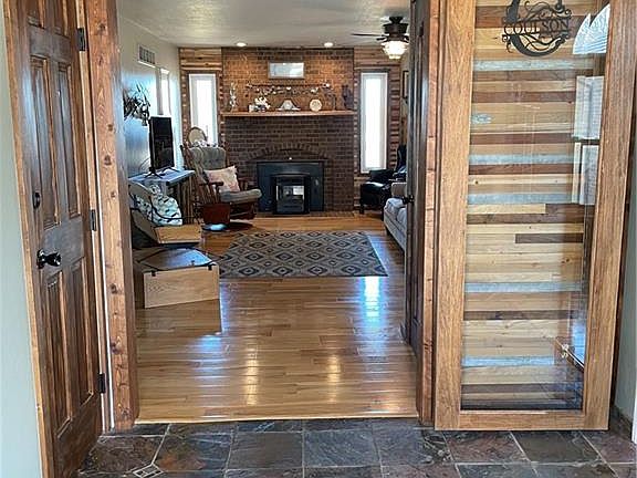 Wow….what a find! This gorgeous 5 bedroom 3 bath home plus one nonconforming bedroom has over 4400 sq feet that includes the finished basement. The main level has a living room with fireplace, a beautiful eat-in kitchen, dining room, two bedrooms, bath, master bedroom/bath/walk-in closet, and laundry room. On the second floor are two spacious bedrooms. The finished basement has a family area with pellet stove, bathroom, kitchen, nonconforming bedroom, storm shelter and game area that walks out to a nice cement/flagstone patio. The kitchen has sliding doors that walk out to the huge back deck overlooking the peaceful backyard. The home has a total of three car attached garages and a 12X16 shed with a dog pen. All newer 50 year transferable triple pane Thermal King windows, main furnace replaced in 2018, a whole house water purifier and water softener. This home is just one block from the school and in a nice neighborhood. This home has so much to offer.