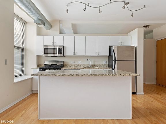 Spacious one-bedroom loft in the heart of Little Italy, situated peacefully on the edge of Arrigo Park. With high ceilings and large windows throughout, this home is flooded with natural sunlight! The open living/kitchen space offers hardwood flooring, a gas fireplace, and a separate dining space perfect for a cafe table. Kitchen boasts a large island with breakfast bar, granite counter-tops, white cabinetry, and all new stainless-steel microwave, dishwasher, and oven. The spacious master bedroom features a large walk-in closet with in-unit washer/dryer. Building offers roof deck terrace, exercise room, doorman, hospitality room, bike room, deeded parking space included in price, and an additional storage unit. Located a rock's throw to UIC's east campus and medical district, Target, 290/90 expressways, CTA transit, and all that Taylor street and Little Italy's restaurant and shopping scene have to offer!