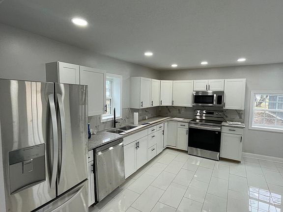 This totally remodeled home has a large inviting living room with new vinyl wood plank flooring and freshly painted. Plenty of natural light , with all new windows, covered front porch. All new appliances. Large master suite, stand-up shower. Eat-in kitchen with new cabinets, and beautifully tiled floors. Large detached - two car garage.