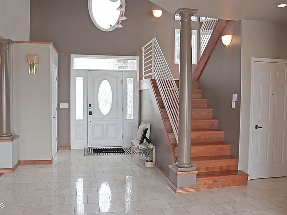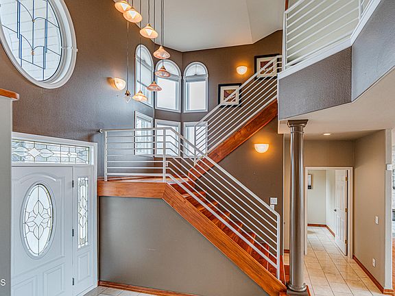 Welcome to this stunning 4900 sq. foot custom home perched on a hill with one of a kind spectacular west facing views located in a quiet cul-de-sac. Upon entering this home you'll immediately notice the soaring two story cathedral ceilings, and an abundance of windows that compliment the large open floor plan. The gourmet kitchen features maple cabinets, marble floors, granite countertops, upgraded appliances, a large center island complete with a prep sink, and a breakfast nook. The kitchen is open to the spacious living room that features a contemporary stone fireplace, and access to the sunroom and deck. There is also a large dining space complete with extra cabinetry. The Main Floor Primary bedroom oasis is complete with a walk-in closet, a private bathroom with a jacuzzi tub, and separate walk-in shower. For added convenience this home also has a oversized main floor laundry room.
