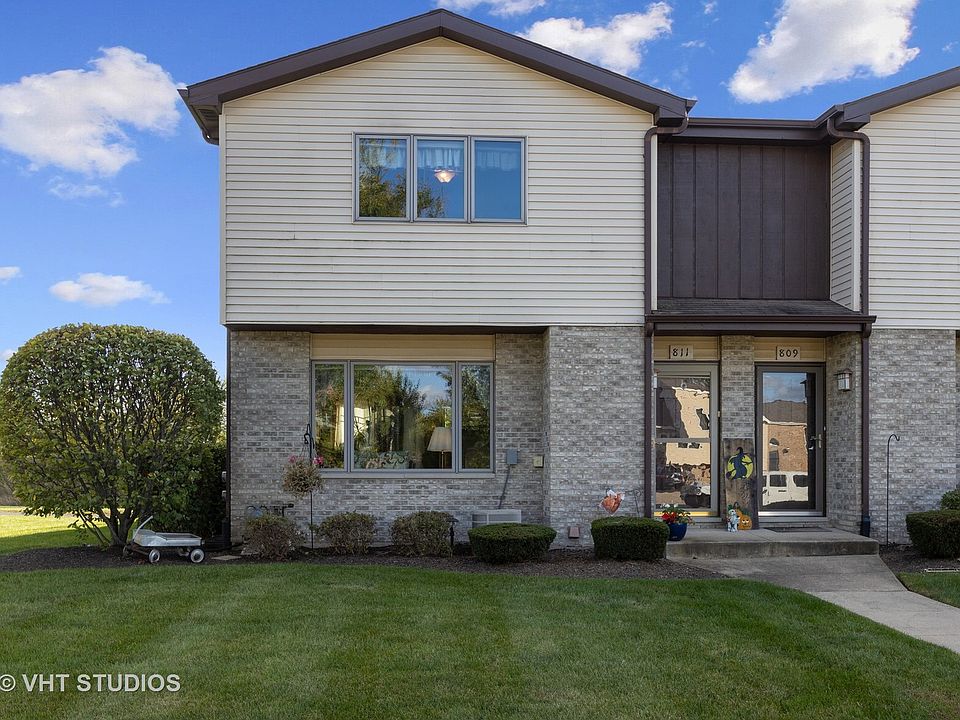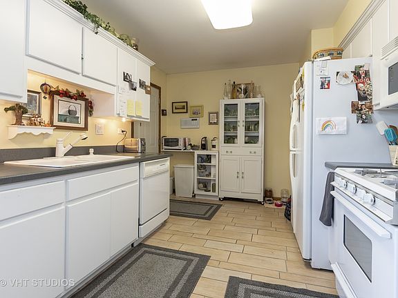 Well cared for 2 story townhouse-style condo end-unit and the only one with a back private courtyard where the entire back opens completely to take in the water views of the beautiful pond with fountains. Kitchen features white O'Gorman cabinets, matching white appliances and a dinette with courtyard access! 2nd floor features all oak woodwork and doors with lever-style handles. Generous bedroom sizes with extra deep closets will fit even your largest furniture! Unfinished basement has rough in for additional bathroom. Laundry hook up in basement. Attached 1 car garage at rear. Extra parking space right next to garage and plenty of guest parking in area. Features open green space with catch & release pond at rear of the property and easy access to walking and biking paths, parks, schools and more. ***Basement cabinets and racks / garage shelving / peg shelf at top of stairs not included.