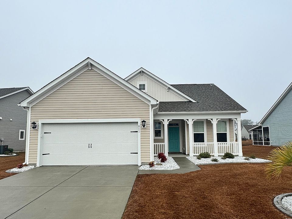 This beautiful 3-bedroom, 2-bath ranch-style home is nestled in the quiet neighborhood located in the Surfside Plantation Community. Built in 2020, the home is full of upgrades, including a tastefully tiled kitchen backsplash, shiplap in the Carolina room, master bedroom and bathroom, as well as a stylish board and batten accent wall in the front bedroom. A vaulted ceiling covers the dining area / great room area. The home has luxury vinyl plank flooring throughout. The bathrooms and laundry room have tiled floors. The kitchen is a culinary haven with stainless steel appliances and an extended quartz countertop. The Owner's Bedroom has a private owner's bathroom, which includes a walk-in closet, a walk-in tiled shower, and a large vanity with a double sink. In the rear of the home is the bright Carolina room that leads into the covered patio. The patio has a privacy wall and illuminated posts, creating an inviting space perfect for entertaining. Situated adjacent to the community pool and clubhouse, with a serene pond view, this home offers both tranquility and recreational convenience. Minutes to shopping, restaurants, Myrtle Beach Airport, and THE BEACH!!! Seize the opportunity to make this charming residence yours. Schedule your showing today!! Don't miss out on the chance to own this gem!