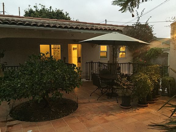 Charming 2 bedroom + 2 bath home in quiet location with basement (laundry/storage) and detached 2 car garage and permitted studio apartment! All new dual-pane windows! Gas fireplace in Living room! New central heater! Both bath updated with slate floors & shower! New Spanish Tile roof installed in 2015! Original solid oak wood floors! Tile kitchen counters, restored cabinets and newer appliances! New electrical and new sewer in 2012! Concrete driveway leads back to 2 car garage. Spanish tile back patio with private yard and fruit trees! Very charming property! Must see!