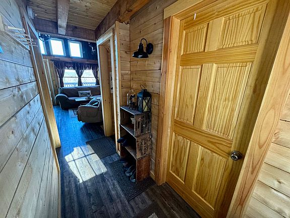 Welcome to your newly built 2021 Timber Frame home, an off-grid sanctuary nestled on 75 acres of pristine land in a private country setting. The open-concept kitchen and living room adorned with cathedral ceilings, creates a spacious and inviting atmosphere. The timber frame construction adds a touch of rustic elegance as the windows allow natural light to flood the space, accentuating the stunning views of the Blue Mountains surrounding you. The wrap-around deck provides the perfect vantage point to soak in the beauty of your surroundings, whether you're enjoying your morning coffee, watching the sunset, or having a barbecue with family and friends. The home features two bedrooms and two bathrooms, providing comfort and privacy for you and your guest. The walk-out basement offers additional living space, including a laundry area and two bonus rooms. For those seeking off-grid living, this property is equipped with a generator, ensuring you have power even in this remote location. Additionally, the camper pad with hookup provides a convenient option for guests. Outside, the private drive ensures seclusion, while snowmobile trails nearby offer opportunities for outdoor fun in the winter months. Whether you're seeking a peaceful retreat, a year-round residence, or a vacation home, this timber frame beauty offers the perfect blend of comfort, convenience, and natural splendor. Sellers will give $10K toward buyers prepaids at closing. Selling "as is" mostly furnished.