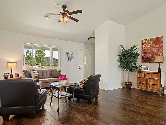 Affordable NEW Construction home in the Ridge View Addition. This home offers the best and all on one level. Features a well-thought out open floor plan with warm welcoming colors! Kitchen offers granite countertops, stainless steel high-end appliances, gas stove, Koch cabinets and center island. Sliding glass doors in the Dining Room will take you to the back concrete patio; Master Suite boasts a walk-in closet and Master Bathroom has granite double vanity. Main floor laundry, vaulted ceilings, laminate and carpeted flooring, high efficiency cooling and heating, 9x15 covered front patio, and LP smart siding! Don't miss the opportunity to call this beautiful home yours!