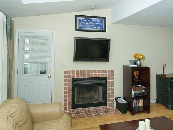 Absolutely stunning 1BR/1BTH end unit in Harmon Cove IV offering a wide open floor plan w/ skylights and great natural light. Entire town home has been completely renovated and boasts travertine tiles throughout entry foyer and gourmet kitchen. Kitchen has cherry cabinets, stainless steel appliances, mosaic backsplash and oversized granite tops and breakfast bar. H/W (oak) floors run throughout and living room has wood burning fireplace and outdoor terrace overlooking the pool. Bathroom with marble floors, granite vanity w/ mosaic tile backsplash and marble throughout shower. Unit has low taxes and maintenance and NYC bus stop steps away.
