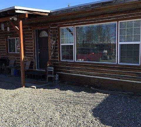 Great trailer-added bungalow(bungalow on solid 8 foot foundation). One 'official' bedroom. Office room/extra bonus room (used as bedrooms); another bonus room behind garage). Washer/Dryer. A good size wood fireplace. Also gas stove/fireplace which heats the whole home. Garage and bonus room behind it are heated. Roomy living room with ceiling fan. Mountain views.