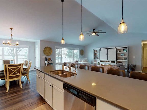 This modern, custom built, ranch is just 3 years old! Enjoy convenient Boone county location in a beautiful neighborhood near Belvidere North HS. This open concept floor plan includes a vaulted ceiling, tons of natural light, an open kitchen, eating, and living room that lead to back deck making it the perfect home for entertaining. Kitchen features white cabinets, stainless steel appliances and 10ft island! Hard flooring throughout make cleaning easy! Private master en-suite includes huge walk-in closet. All the perks of new construction, plus additional features that have been added since construction: water softener, reverse osmosis system, yard irrigation, security system, and in-ground dog fence around entire house. Check out the virtual tour! Agent Related.