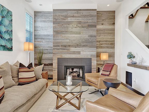 Welcome to modern coastal living in Newport Beach! This stunning condo, just a mile from the beach, features bamboo flooring, high ceilings, and a rustic wood-paneled fireplace in the living room. The primary bedroom boasts a stone fireplace, en suite bathroom, custom closet, and French doors leading to a staircase to the living room patio. The second bedroom also features an en suite bathroom and custom closet.