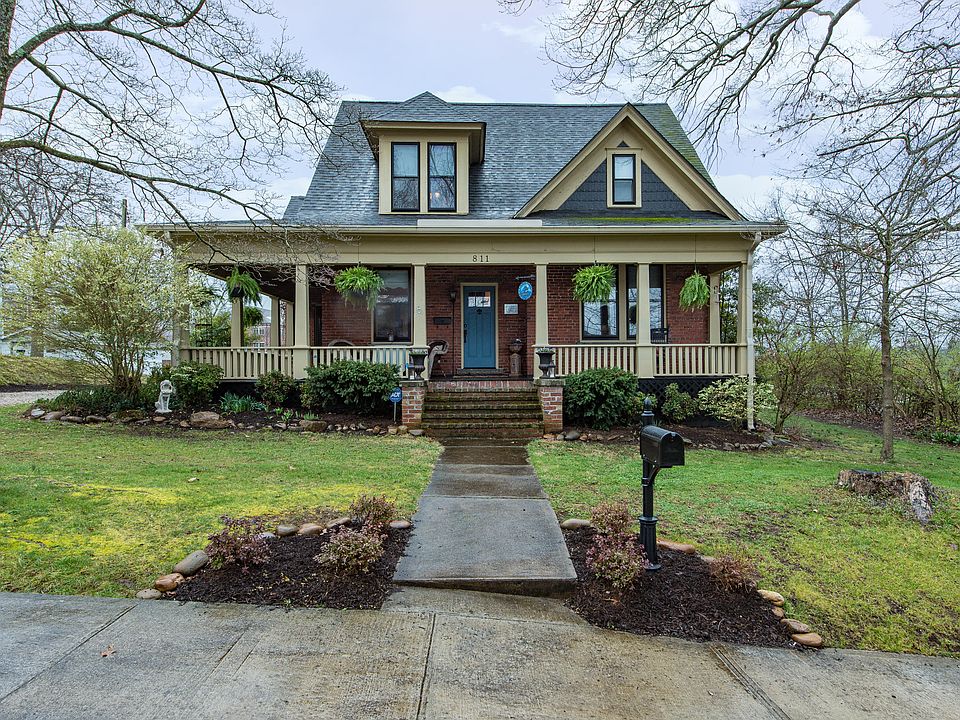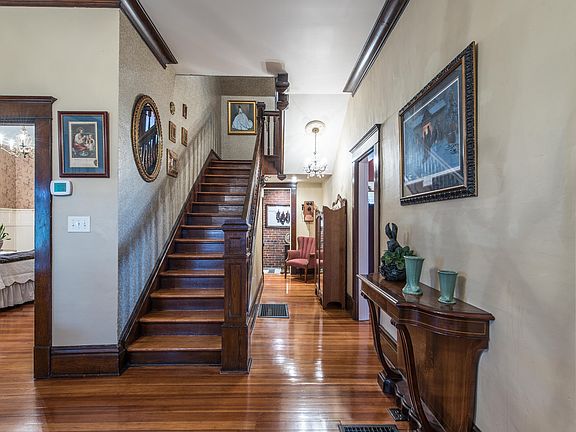 Step back in time, but with all the modern amenities. Enter into your new home through the gorgeous parlor highlighted by the brass and crystal chandelier. This 1907 home boasts two master suites with upgraded bathrooms including a claw foot tub and heated tile floor upstairs and a soaker tub in the downstairs suite. Heart of pine wood floors throughout the house. Ten foot ceilings downstairs with a coffered ceiling in the dining room and an elegant built in china cabinet with a pass-through to the kitchen. The updated kitchen includes a Thermador Proffessional gas range/oven. Stainless steel appliances with quartz countertops and a pot filler over the stove. There are built in book cases in the den with pocket doors for privacy. The solid wood stair case will lead you up
