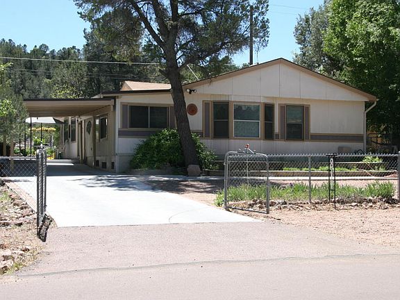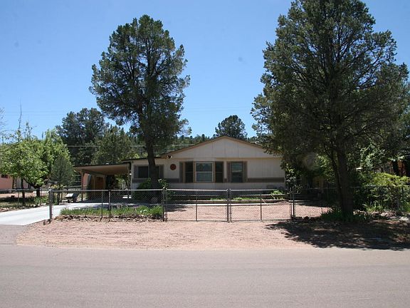 Meticulously maintained manufactured home backing to National Forest. Pride of ownership here. Sit in the eat in kitchen and watch the world go by through the bay windows. Relax in the back yard with views of the forest surrounded by a lovely garden and an apple tree (Golden Delicious no less!) Room for a smaller RV, fully fenced with double gates. This home is easy to live in and very low maintenance. The year 'round sun room is both heated and cooled and fully insulated. A delightful potting shed is out back for gardening , arts and crafts, whatever your heart desires.