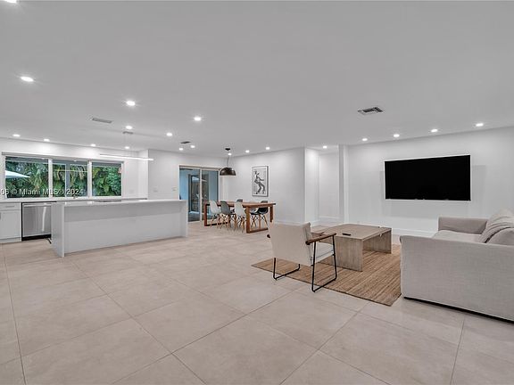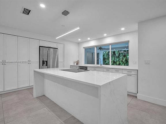 Beautiful location in Hollywood Lakes surrounded by waterfront homes. A few houses from intracostal this pool home with 2-car garage is situated on an oversized lot. As you approach the home, you are greeted by lush landscaping and a grand circular driveway, providing ample parking spaces. Step inside to discover a beautifully renovated kitchen, featuring a center island with quartz countertops/waterfall. The home provides an open concept with the kitchen/living/dining area. The Master Suite has access to the pool/patio area with a renovated glass-enclosed shower. Split floorplan with tile throughout & renovated bathrooms. Oversized pool with a covered terrace and Travertine marble pool deck. Impact windows, sprinkler system, and laundry room! A must-see home close to the famous Broadwalk.