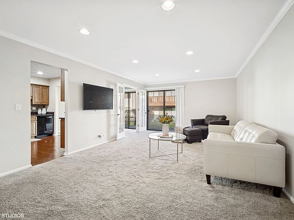 Move in ready upgraded pristine first floor 2 bed/2 bath unit. This spacious unit features crown molding, recessed lighting and fresh painted walls. Gorgeous kitchen with custom maple cabinets, soft close drawers, tile back-splash, granite counters and breakfast bar. Beautiful bathrooms feature tastefully finished tile, vanities and lighting. Master bedroom with large W/I closet. Dining room can be used as home office. Laundry in unit. Great patio off the living room for outdoor entertainment. Private 1 car garage is just few steps down the hall. Nothing to do but move right in. Close to Buffalo Grove HS, shopping, parks, recreational activities and transportation.