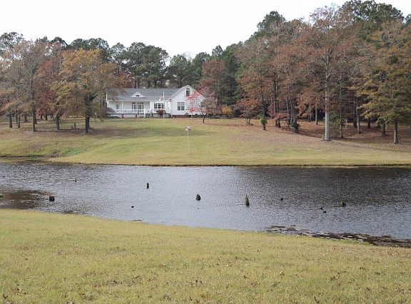 Nature's Paradise!19+ Acres partly wooded & partly cleared & includes a 3 acre pond & another 1/2 acre pond that is spring fed.Dogwood trees galore along with Hickory,Wild Cherry,Sweetbay, Popular,& Crabapple! Home features choice decking on porches & deck (maint.free)! 9'ceilings throughout with a cathedral ceiling in Great Room & front bedroom.All rooms have crown molding;Chair railing in great room,dining area,& kitchen.Kitchen features built in Refrigerator; All interior doors are 3' wide providing easy access!Wired tobacco barn on property is used for storage of outdoor equipment. Also included are sheltered,concrete dog runs in the barn area.Wildlife abounds Tranquility as you look out across the ponds & watch the ducks, geese, deer, & birds of all kinds! A true beauty!