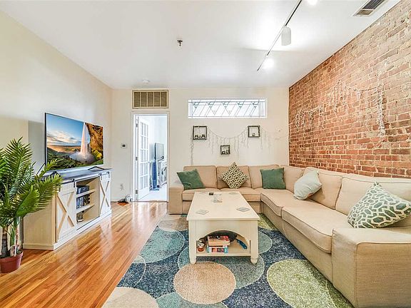 Don't miss this spacious 2-bedroom, 1.5-bath condo located in the heart of Hoboken! Ideally situated just one block from Columbus Square Park and minutes from the vibrant shops, dining, and nightlife of Washington Street. This charming unit features exposed brick, abundant natural light, stainless steel appliances, central air, a breakfast bar, and a built-in wine rack. The open-concept kitchen flows seamlessly into the living and dining area, with bedrooms thoughtfully positioned on opposite ends for added privacy. Enjoy the convenience of free laundry in the building and additional storage in the basement. Commuters will love the easy access to the PATH train, Light Rail, and nearby bus stops. Schedule your private tour today and experience all that Hoboken living has to offer!