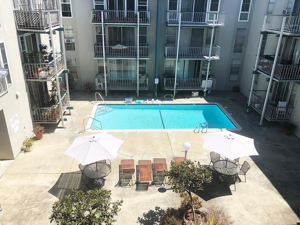 Enjoy living in a sunny condo just one block from the Lakeshore/Grand Avenue shopping district and a few blocks from I-580 and Lake Merritt! 811 York Street is a peaceful, restricted access building featuring a courtyard and a pool, laundry facilities on each floor, key operated elevators, and a building manager. The building is extremely convenient, boasting a 92 walk score. It's a short walk (less than 10 minutes) to Trader Joe's, the Saturday Farmers' Market and Lake Merritt. Unique features: Reserved garage parking for *no additional fee*, a private storage unit for *no additional fee*, no pet deposit (small dogs and cats), a pool and sauna on premise, elevator access to all levels, patio attached to the apartment. Interior: Dishwasher, garbage disposal, oven, refrigerator, microwave, hardwood floors throughout, dimmable canned ceiling lights, home office nook, laundry facility on same floor, water & garbage included Terms: $2100 per month One year lease term Reserved parking space included Storage included Security deposit: $2100 Dogs & cats accepted without additional deposit Tenant pays gas, electric, cable/internet No smoking No subletting Occupied until end of August (renting unfurnished). Contact owner for showings.