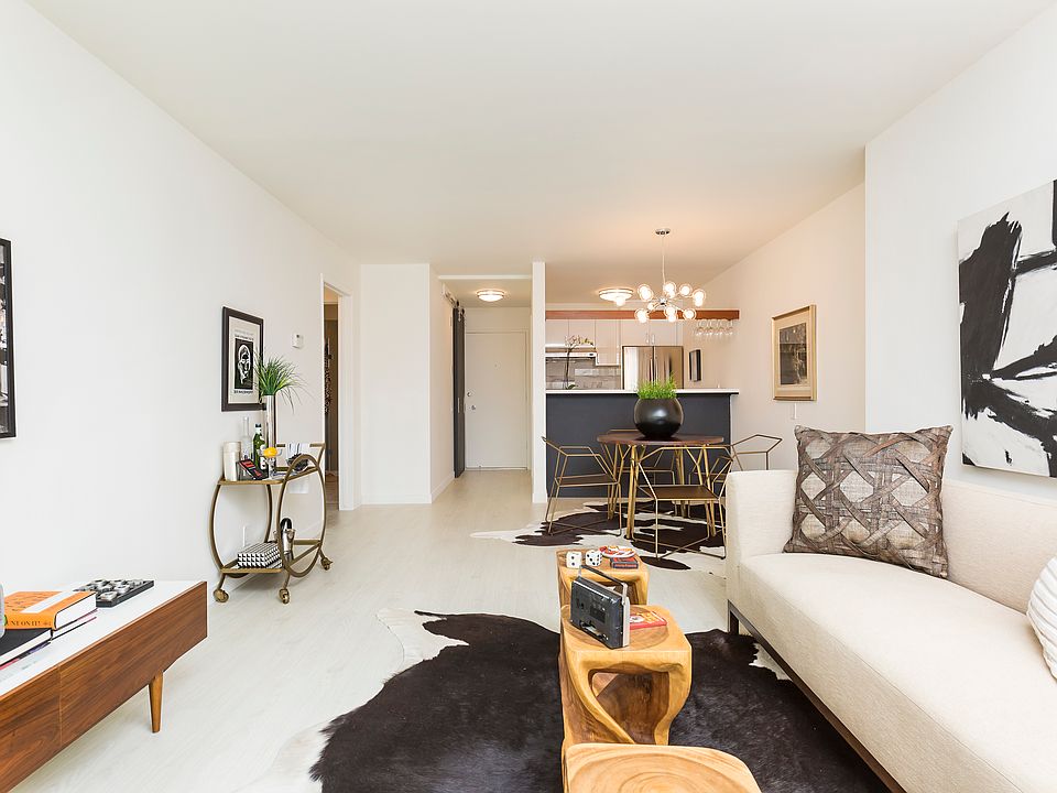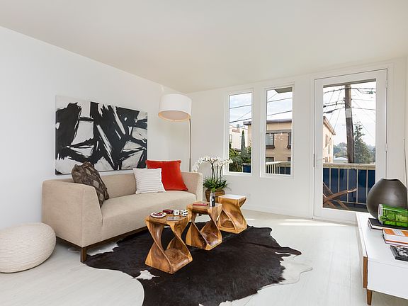 Stunning top to bottom renovation. Ultra chic style. 1 bd 1 ba with terrace. UNIT NUMBER IS 105! Home is located on the pool level of York Tower. Durable pale floors & new lighting throughout. Bold barn door entry closet. New kitchen accented by stainless steel cabinets. White quartz counter top and tile marble back splash sets the stage for timeless style. Breakfast bar with overhead wine rack. All new stainless steel appliances including a french door refrigerator. Open living and dining room with spunik chandelier leads to terrace. All new double pane windows and french doors. Terrace promotes indoor outdoor living. New modern bathroom with wall hung dual faucet vanity. Luxurious walk in shower. Master bedroom has ample closet space and access to terrace. 1 car parking and storage. Laundry room on same level as home. York Tower is a secure building with handsome entry lobby and elevators located close to Lake Merritt. An outdoor pool with sundeck and sauna is an oasis within the building. Laundry rooms, storage and parking garage. Steps from the lively and coveted shops, dining and entertainment on Grand Avenue. Close to major transit options - BART and highways.