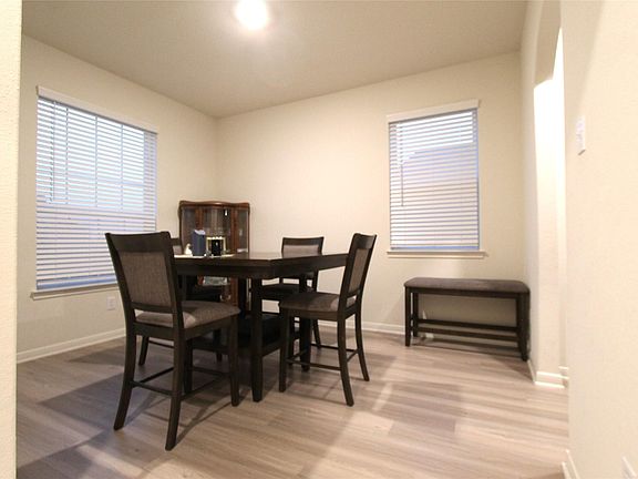 This open and spacious one-story home at Vacek Country Meadows features incredible entertaining space with a private dining room, spacious kitchen with breakfast bar, A huge family room and an extended covered back patio with Large yard. The upgraded kitchen includes stunning wood cabinetry, granite countertops, recessed LED lighting, luxury vinyl plank flooring. Built-in microwave. The private owners retreat features a soaker tub, step-in shower and a large walk-in closet. Tour this home today and experience the peaceful neighborhood of Vacek Country Meadows, where you will enjoy a friendly setting with open green spaces, sidewalks and street lights throughout the community.