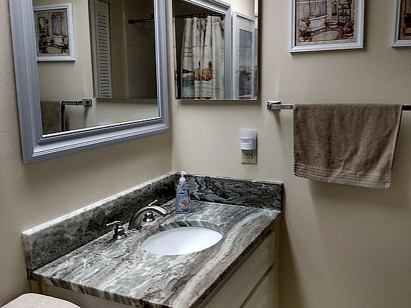 Stunning condo, remodeled Nov 2019 with new kitchen cabinets, granite countertops, new kitchen appliances, sink, garbage disposal, granite bathroom sink, faucet, tile floor, new rugs , new wiring with ceiling fans, new air conditioner unit, freshly painted, new blinds in lani and kitchen. Jan 2021 new granite vanity top with sink and faucet, fog free mirror. HOA includes water, trash, cable, internet, grounds maintenance, pest control, covered carport community, 55 plus community, deed restrictions.