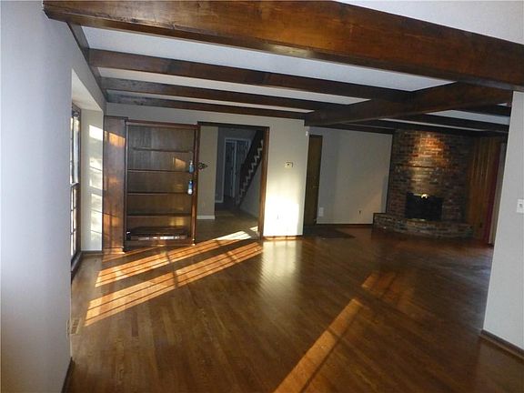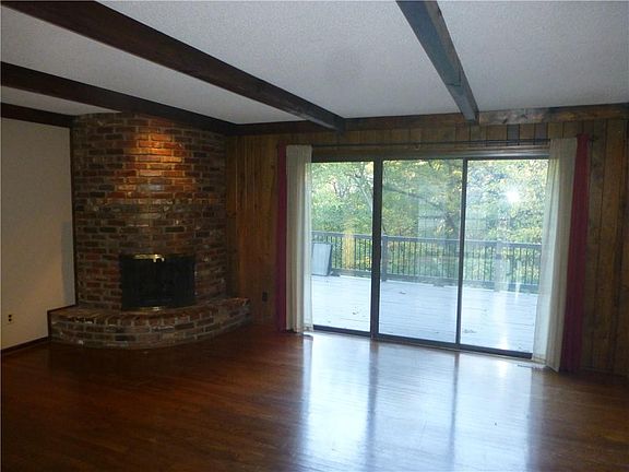 curved fireplace in the hearth room, wood beamed ceilings in the living room and hearth room, and a walkout lower level waiting for your future expansion. Located at the end of a cul de sac, the wonderful lot backs to a heavily wooded green space providing privacy. The huge deck in the back provides a great space for entertaining or just relaxing. The deck in the front can be used for relaxing or watching the neighbors go by.