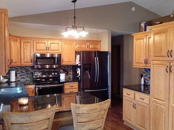 Gorgeous immaculate home! Large foyer entry and warm inviting colors throughout! Granite counter-tops, breakfast bar, and beautiful tiled back splash! Stainless appliances about 3 yrs old. Roof: 2010. Bedroom carpet downstairs is newer. SPACIOUS rooms! Basement familyroom is finished in knotty pine and has a cozy gas fireplace. Bedrooms have walk-in closets and lots of space! 12x14 deck and a patio too! Sprinkler system and extra storage shed. Move right in...it is ALL done for you!!