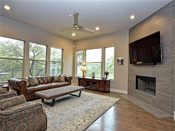 FORMER MODEL HOME located on cul-de-sac offers gorgeous VIEWS and plenty of PRIVACY! Gently lived in for less than one year & immaculate. Feels like living in a luxurious treehouse. Balcones Canyonland Preserve surrounds this beauty. Preserve Floorplan with 2nd Living/Media Room Upstairs! 2,395 Sq Ft. 3 Bedrooms, 2.5 Bathrooms, 2 Living This excellent open floor plan is ideal for living and entertaining with tons of natural light throughout with walls of windows and vaulted ceilings. The chef in the family will love the high-end kitchen with granite countertops & built-in stainless appliances, including a wine fridge! Enjoy upgrades throughout including solid wood doors, wood floors downstairs, Nest thermostats, wired for surround sound, multiple balconies, deck, oversized two-car garage, fenced backyard. The list goes on & on! Stunning community pool, outdoor fireplace, and grill. This unit has been lived in for less than one year, $59k below same model listed by builder!