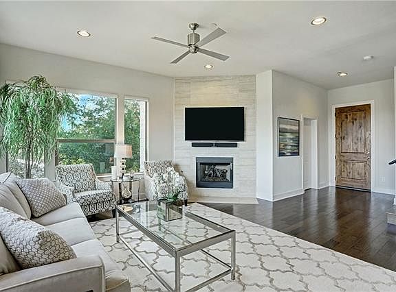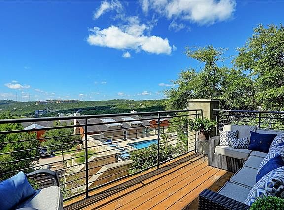 Amazing City Views as soon as you enter & surrounded by the the wooded hillcountry too. Perfect Urban Hillcountry Modern retreat with over $50,000 in upgrades. 4 baths, Wood floors main level, huge kitchen w/large island, sleek fireplace, patio with amazing views. Luxurious master with 14' ceilings and downtown views. Master bath with freestanding tub & triple shower head.Large media room (could be 4th bd/rm)2 additional bed/rms one used as study w/murphy bed. Minutes from Downtown and Lake Travis.
