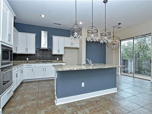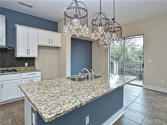 Beautiful gated community. This unit has recently updated the kitchen and fixtures throughout the condo. Bright and welcoming open concept kitchen, with a whole wall length huge patio, perfect for entertaining. All 3 bedrooms are privately located upstairs. Masterbedroom has gorgeous hill country views with attached bathroom and walk in closet. This unit is one of the few ones that backs up to the greenbelt with full privacy.