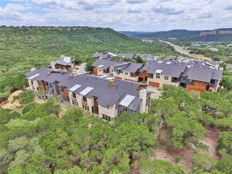 Last three bedroom! backs to the tranquility of Balcones Canyonland Preserve in the highest building in the award winning community of modern condos; we'll not see the like again.The highest building in the award winning community of modern condos. Located in a cul de sac with private fenced yard, superb contemporary finishes, 14' vaulted ceilings, study opens to covered balcony. Luxurious master suite. Community pool area includes grill, hot tub, outdoor fireplace. Open House, Sun 1-4