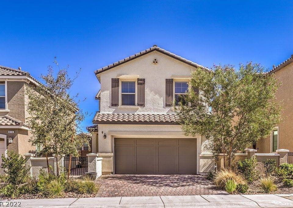 Welcome home to this stunning 2-story property in the heart of the coveted Skye Canyon master plan community. This home showcases stunning and upgraded features throughout! You'll find gorgeous wood vinyl flooring throughout the entire downstairs, a HUGE double glass sliding door that allows tons of natural light for your living room & a perfect way to open your house up for entertaining, tankless water heater, dream kitchen that features white quartz countertops, a large island, and upgraded 42" white cabinets with upgraded silver hardware. 1,486sqft ~ 3 bedrooms. The backyard has a great sized patio, synthetic grass, and beautiful shrubbery. Being a Skye Canyon resident gives you amenities that include parks, playgrounds, swimming pool, spa, fitness center, basketball courts, splash pads, soccer field, tennis courts, dogs runs, clubhouse w/ cafe, fire pits & more! Don't miss out on this rare find in Skye Canyon. Be the first to tour it. Contact me today!