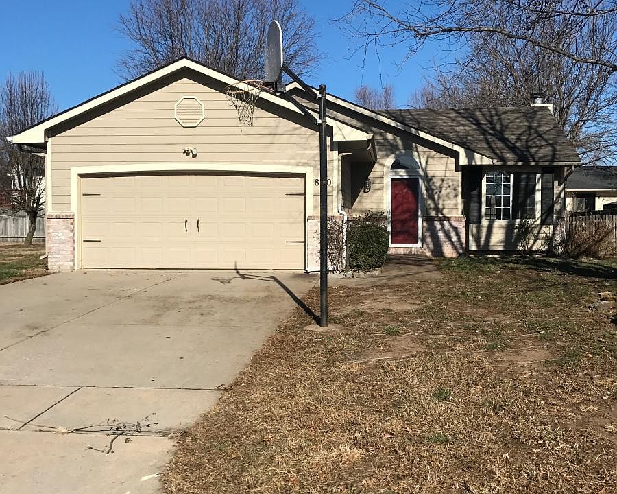 4 bedroom/3 bath home in quiet cul-de-sac in Maize School District. 3 bedrooms up and 1 bedroom downstairs, master bedroom has own bath, fireplace downstairs, wood laminate flooring in kitchen/dining room/upstairs living room, new carpet coming, fenced back yard and attached 2 car garage.