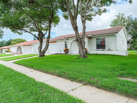 Charming 2 Bedroom, 2 Bath, 1 Car Garage home in Spanish Gate Village of Timber Oaks 55+ neighborhood. Living Room/Dining Room combo leads into the Lanai through a sliding door. Kitchen has a 10X10 Dinette room with closet pantry, pass through. Master Bedroom has full bathroom with a connecting door to the bedroom and hall way. This split bedrooms home has the Second Bedroom with full bathroom and a sliding door to Lanai. Lanai is 28X12 and is separated by a sliding door. Garage has Laundry sink, cabinet storage, washer and dryer hook. Roof replaced in 2009 and A/C replaced in 2018 Timber Oaks amenities includes Pools, tennis courts, shuffleboard, bocce ball and Clubhouse that offers: ballroom, Cards, billiards, sewing room & fitness room. Shopping, Restaurants and Medical facilities close by. Hudson Beach and other beaches including parks within driving distance.