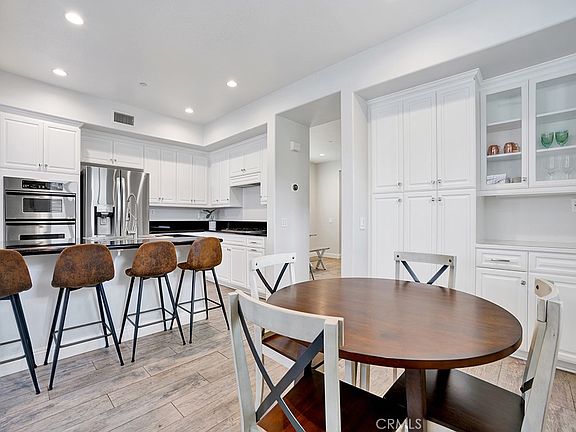 Serrano Casita in the Heights. This two-story, elegant, highly upgraded home is an entertainer's delight. Step into this uncommon luxury three-bedroom + loft detached in the rolling hills of Serrano Heights. Quiet enjoyment is experienced in this modern-day estate, with fine amenities on this secluded cul-de-sac street. Enter into a light and bright, beautiful ambiance, with wood grain tile flooring, recessed lighting, a contemporary color palette, and upgraded plantation shutters. Spacious living is highlighted in the open concept, massive kitchen, family room with dining area, attached china hutch with cabinet, fireplace, and entertainment center niche. The kitchen is appointed with stainless steel appliances, a gas range, granite countertops, a huge center island with an eat-up bar, and contemporary cabinets with brushed nickel hardware and under-cabinet lighting. When you access the upper level, appreciate the upgraded staircase with designer wrought iron bannisters and rich wood flooring. Also, a well-designed interior living space with spacious bedrooms, an upstairs laundry room with a stackable washer and dryer, custom storage cabinets, a loft perfect for computer study or coding, or an artist studio, a good workout, or a place for mindful yoga. The master suite is for the king and queen of the house with a beautiful vanity area, fan lamp, stone counters, double sinks, a separate tub, walk-in shower, and a massive walk-in closet. Entertain with pleasure, convenience, and style with the custom-built-in barbeque center, and relax by the fire pit. The professionally designed rear yard is enhanced with raised layered stone planter areas, custom stamped concrete patio, and beautiful foliage. The attached garage provides epoxy flooring, additional built-in cabinets, and overhead storage. Loftwood has access to top, accredited California schools nearby. Steps to the Association pool, spa, community center, parks, close-by shopping center, schools, and the Anaheim Hill Golf Course.