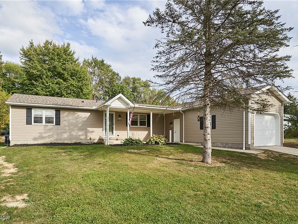 RANCH STYLE HOME with 3 formal bedrooms, a bonus room in the basement, and 2 full bathrooms! What else could you want in this recently renovated gem? Let me tell you everything about this delightful home. With brand new siding, furnace, AC, flooring, finished basement, and roof, you're set to move right in and not have any worries. As you walk up, you'll quickly enjoy the covered patio that makes for perfect days of relaxation, no matter rain or shine. Enter through the front door to be welcomed to flowing luxury vinyl flooring in the living room that sprawls throughout the 1st floor. Your spacious living room houses a deep closet for extra storage space. As you walk into the kitchen, enjoy beautiful new quartz countertops and all the appliances that will stay with the home. Walk towards the bedrooms and see 3 nicely-sized rooms, and the 1st full bathroom. This bathroom was upgraded in 2021 by way of new flooring, vanity, and toilet. In 2024, the tub was replaced, and the tile surround was added for an extra touch of class. Head down to the newly finished basement where you'll have a large space for a game room, entertainment area, or home gym. Not only do you have the rec room, but also a bonus room that can easily act as another bedroom or home office space; all that AND a sizable full bathroom with the coolest shower panel you've ever seen. Before you leave, step into the oversized garage and enjoy the fully fenced yard, perfect for pets! NEW as of 2024, the Medina County Park District paddle craft launch is steps away from your front door. This launch space allows you to drop into the canal and make your way RIGHT into Chippewa Lake! This home is an oasis, just waiting for you to come and enjoy a bit of country life. Home Warranty Included! Book your showing today. Listing agent is partial owner.