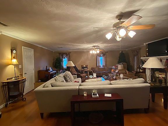 The perfect home including crown molding, beautiful hardwood floors, huge living room with fireplace (gas logs.) A large eat in kitchen with natural hardwood counter, solid hardwood cabinets and built-in microwave. Cedar lined closets, including the one that is the length the living room! Large finished basement with separate entrance, natural wood walls that would make a great man cave, game room or 4th bedroom. Garage with unfinished basement for storage. Huge front porch with a wonderful view of nature for morning coffee. A barn with three stalls and fenced pasture with a pond. Huge oversized workshop that can fit an 18 wheeler, including an oil pit, second story storage area and office. A chicken house that includes storage area next to an established garden area.