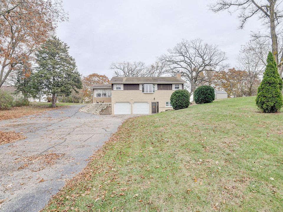 If your in the market for a larger home, come check out this 2 BR, 3BA with the possibilities of creating a third BR. This home in situated on almost 3/4 of an acre with views of the lake. It features a large master suite, finished lower level, spacious rooms, two car garage, newer furnace, AC, refrigerator, stove, flooring and more.